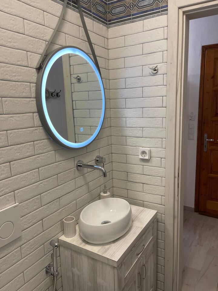 This spacious and comfortable air-conditioned one-bedroom studio is fully equipped with everything you need for a relaxing stay. It features a kitchen with a fridge, oven, and washing machine, as well as a dining table, sofa, and a large flat-screen TV with Netflix for your entertainment. The studio is accessed through the main entrance of the building, with a few steps leading down to the private entrance. Accommodating up to 4 guests, the studio offers a double bed that can be split into two single beds, and a sofa that can transform into a double or two single beds. Outside, you'll find a small backyard with a coffee table, washing machine, and space to do laundry. For families with young children, we offer a baby playpen and high chair upon request, at no extra cost. The studio also includes fast Wi-Fi, making it ideal for remote work or staying connected with loved ones during your stay.