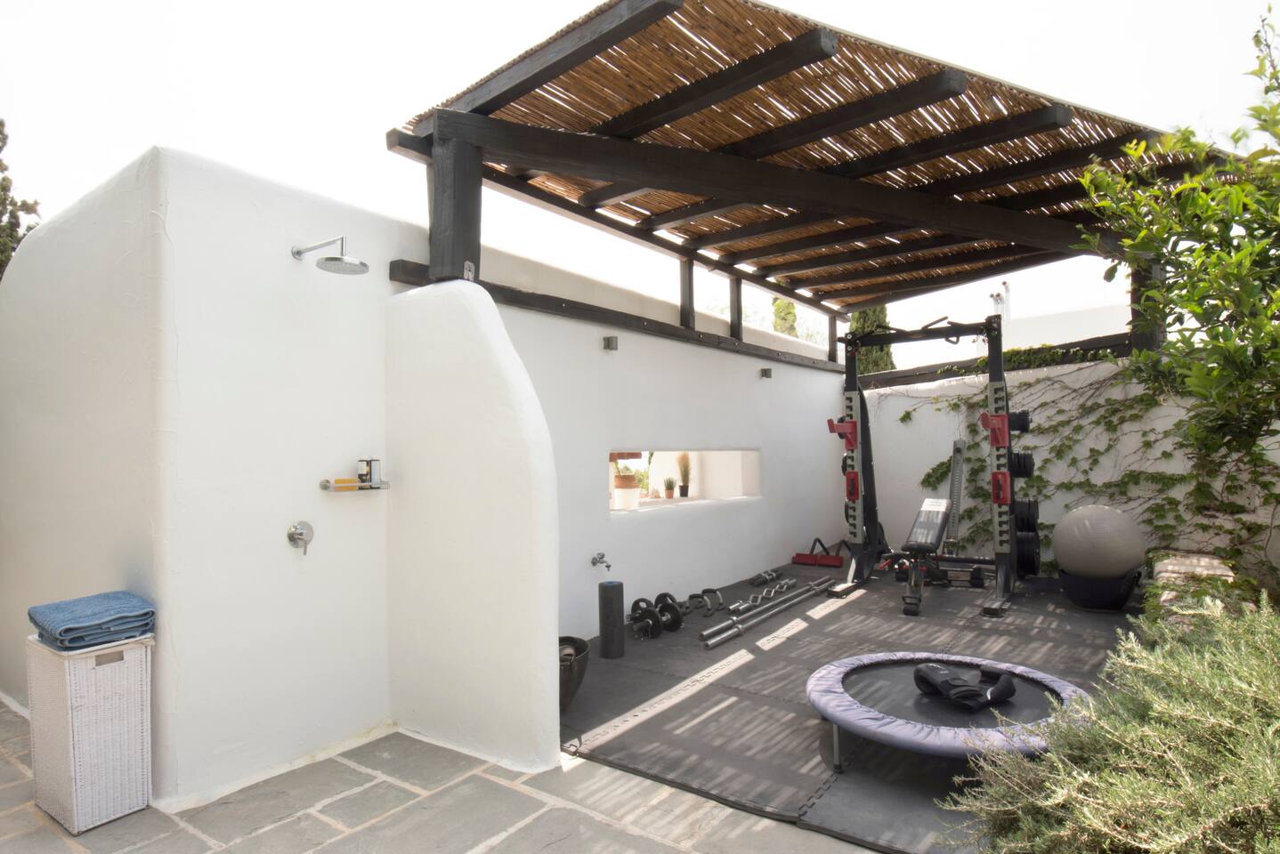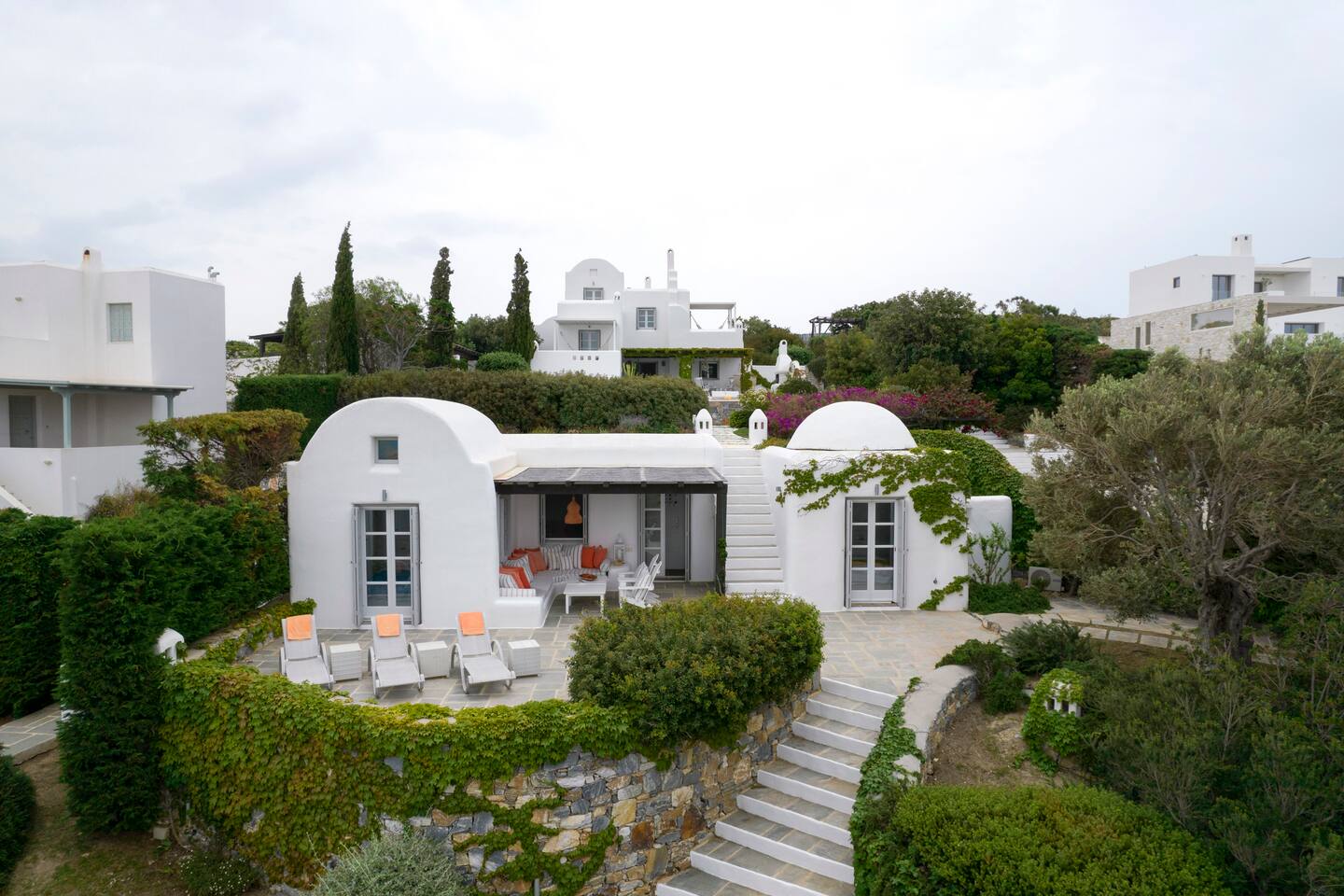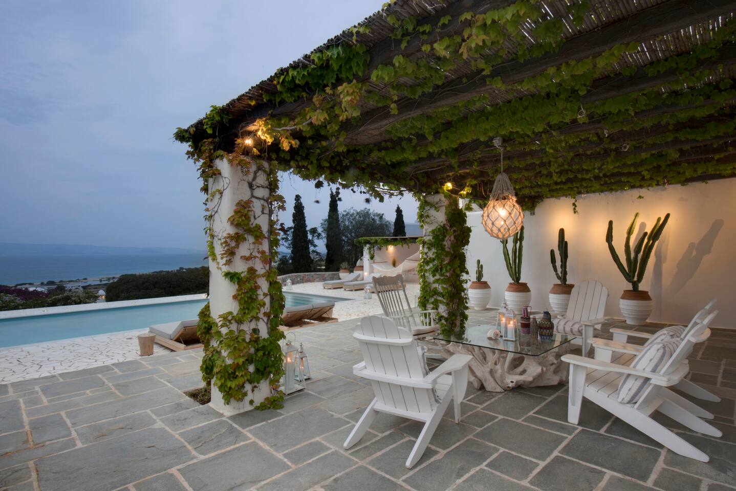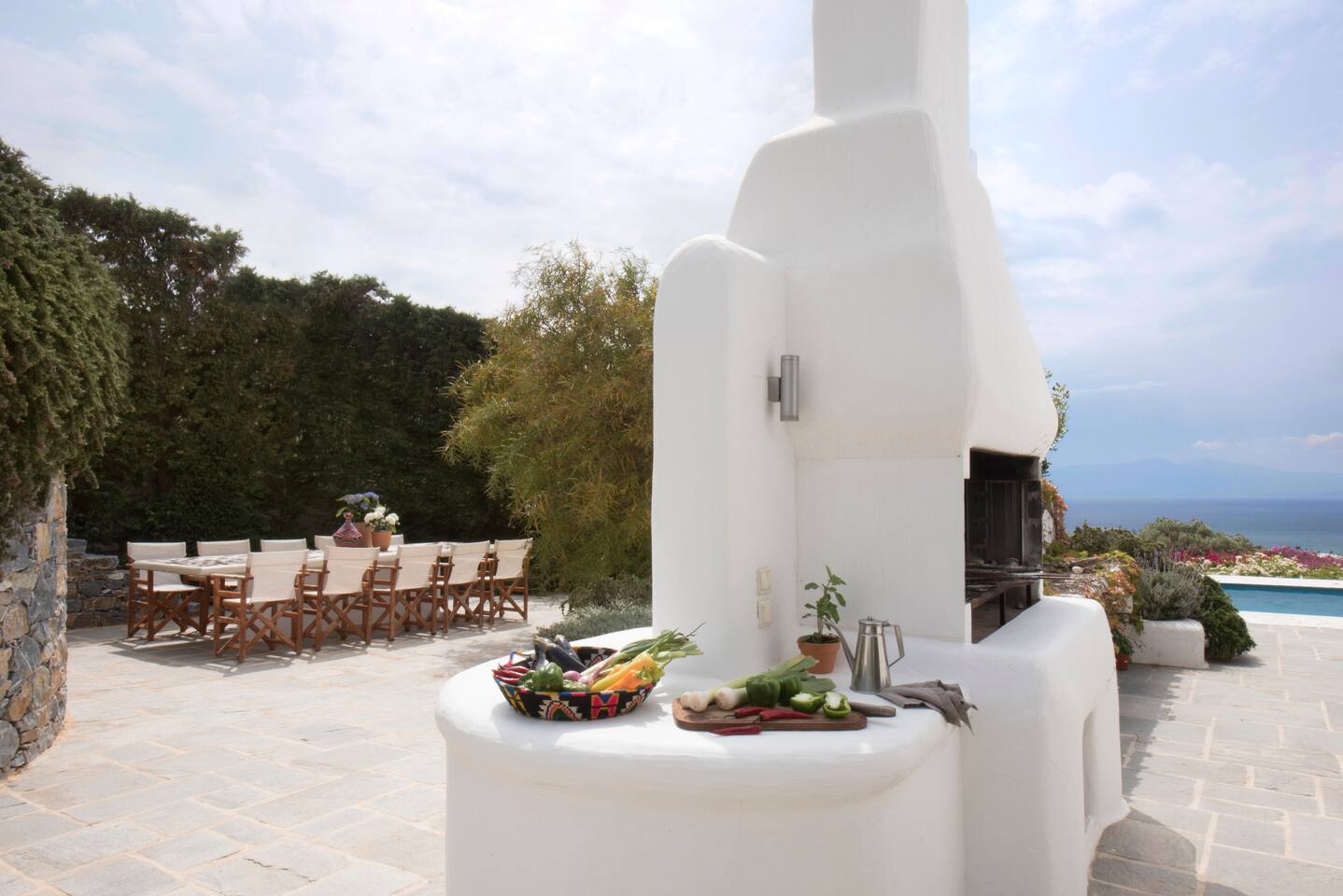 This traditional Greek Cycladic home offers modern amenities and a guest house on a lush, three-acre property surrounded by cypress trees for privacy. The award-winning garden enhances its charm. The home features seamless indoor/outdoor living with spacious pergolas, sitting areas, and a swimming pool. It includes a well-equipped outdoor gym and a two-bedroom guest house with a full kitchen, indoor/outdoor living spaces, and secluded outdoor showers, providing a perfect retreat. ΑΜΑ 1691205