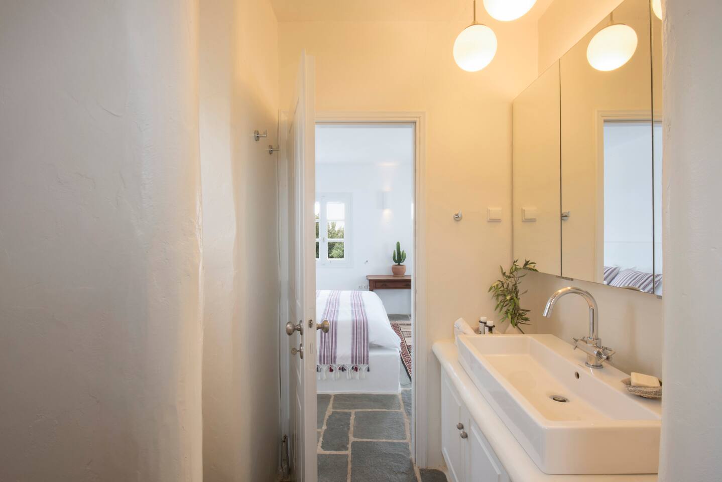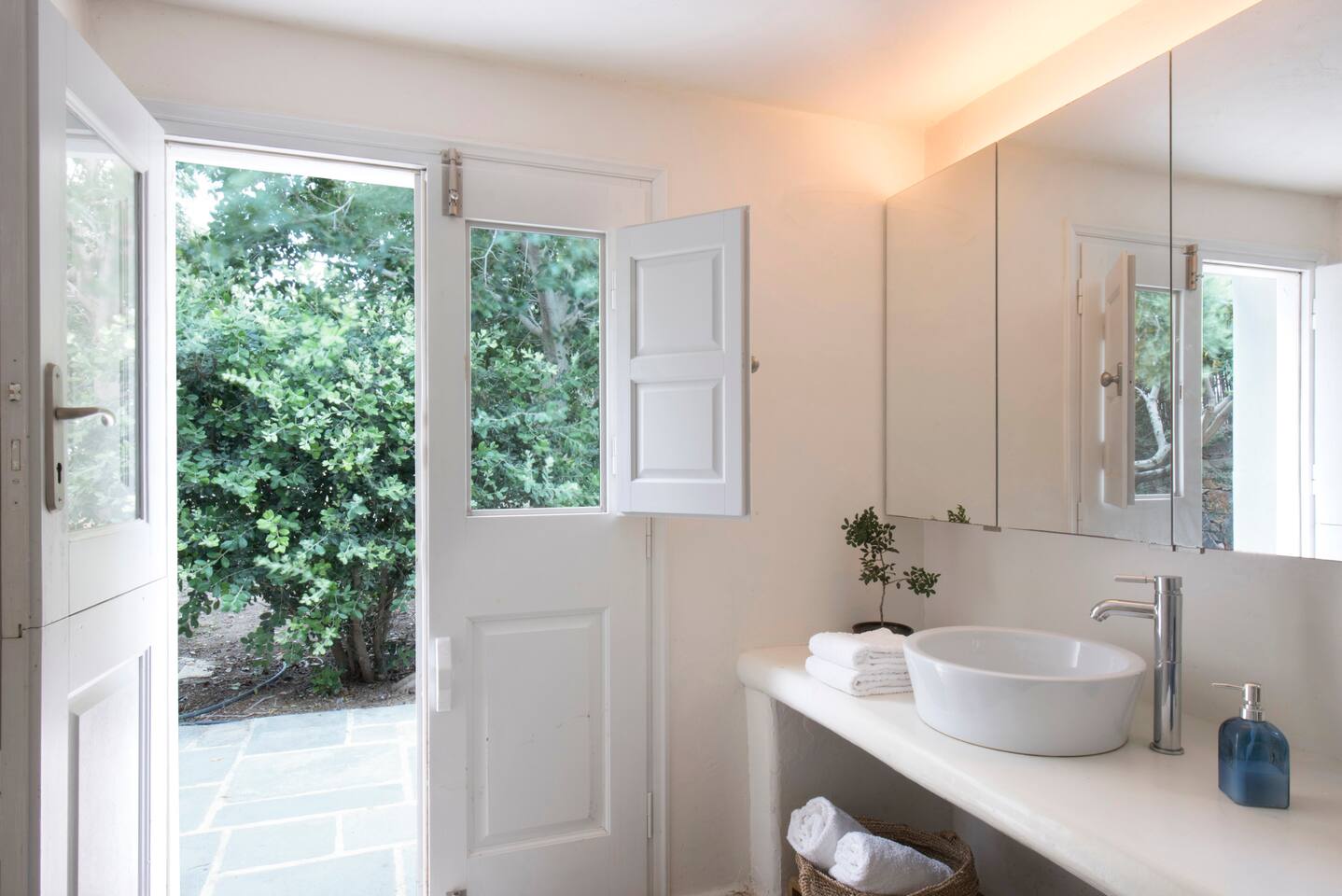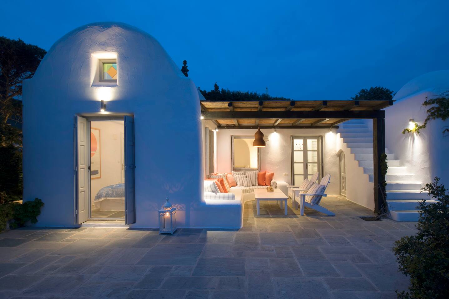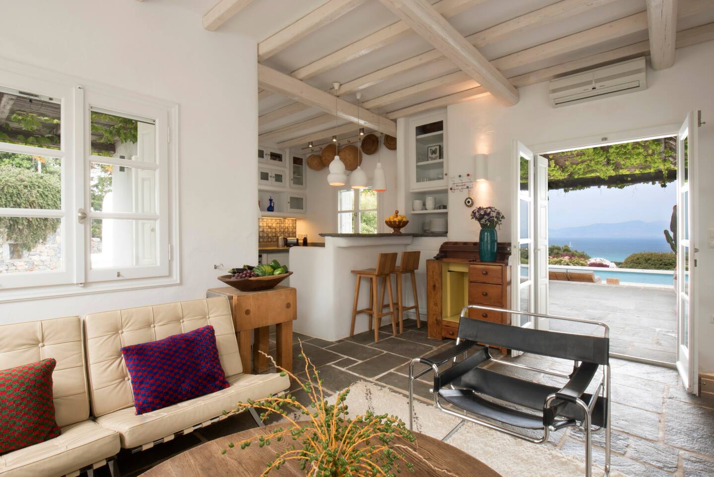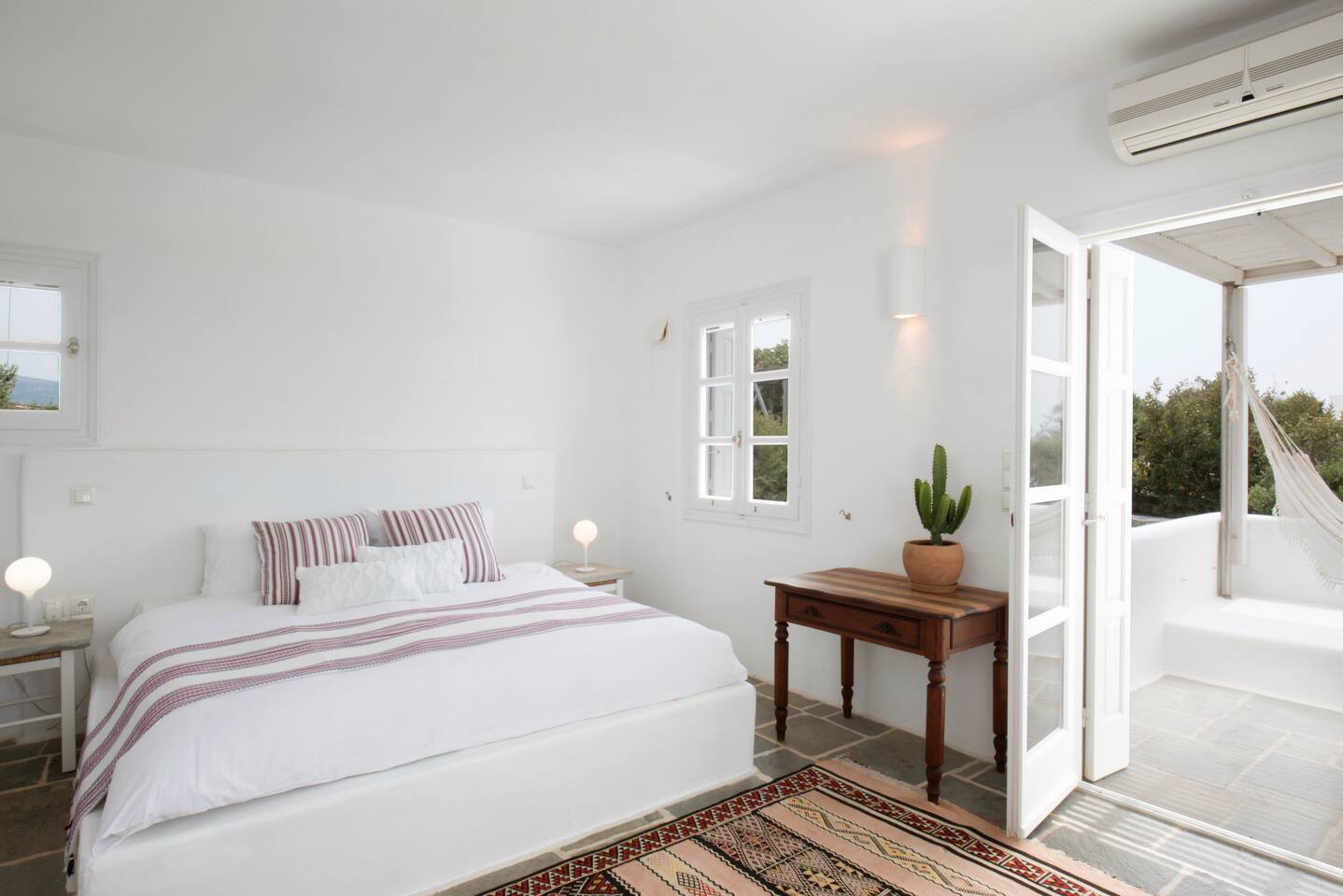 This traditional Greek Cycladic home offers modern amenities and a guest house on a lush, three-acre property surrounded by cypress trees for privacy. The award-winning garden enhances its charm. The home features seamless indoor/outdoor living with spacious pergolas, sitting areas, and a swimming pool. It includes a well-equipped outdoor gym and a two-bedroom guest house with a full kitchen, indoor/outdoor living spaces, and secluded outdoor showers, providing a perfect retreat. ΑΜΑ 1691205