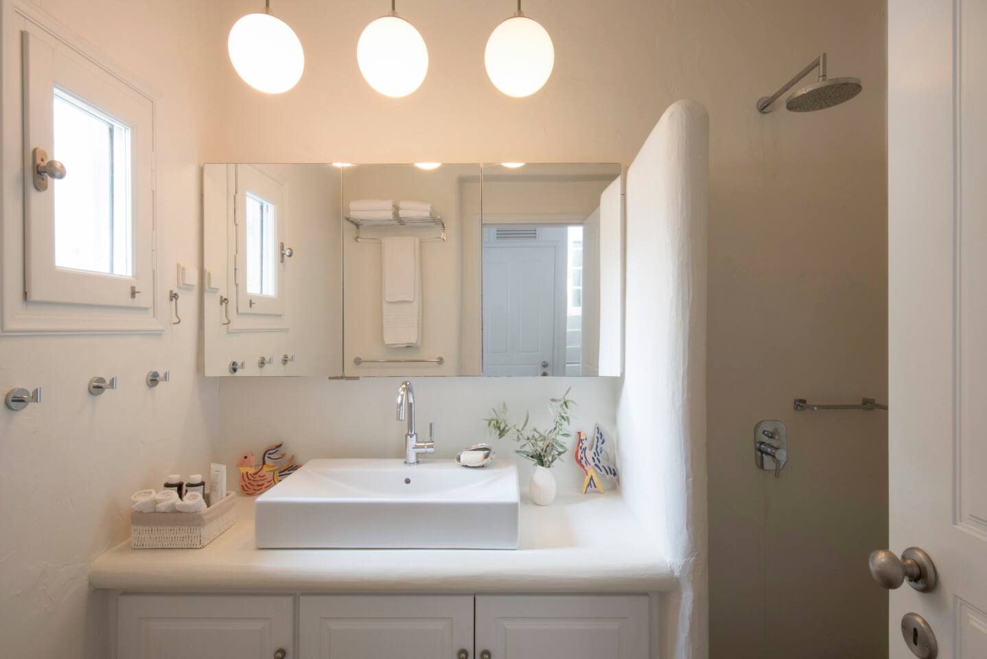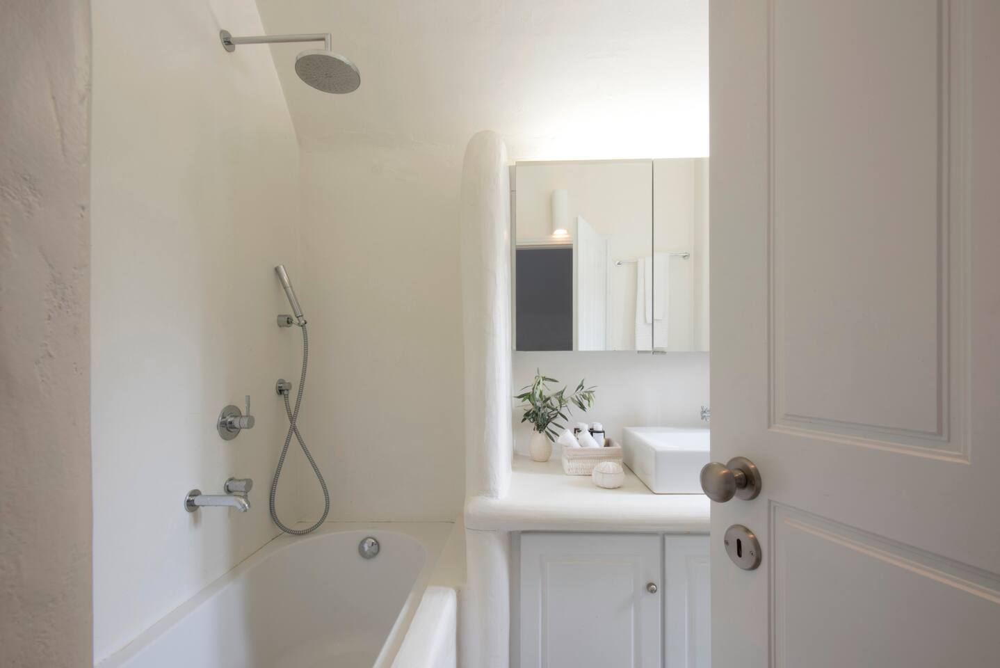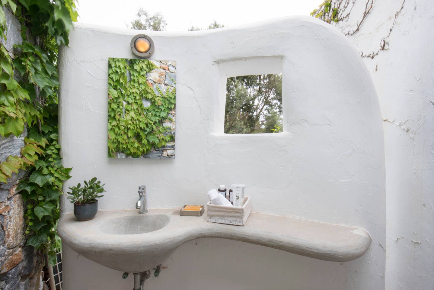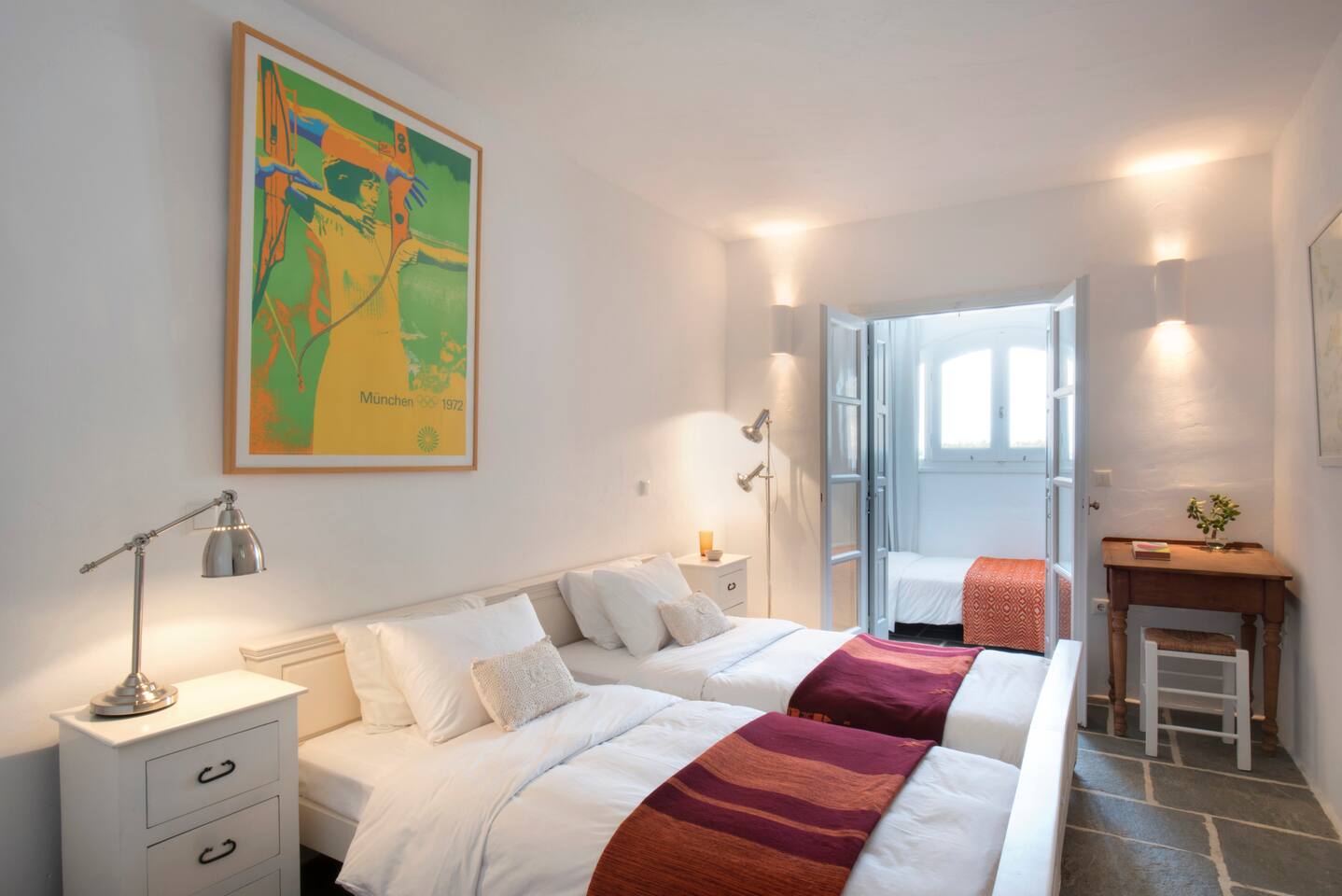 This traditional Greek Cycladic home offers modern amenities and a guest house on a lush, three-acre property surrounded by cypress trees for privacy. The award-winning garden enhances its charm. The home features seamless indoor/outdoor living with spacious pergolas, sitting areas, and a swimming pool. It includes a well-equipped outdoor gym and a two-bedroom guest house with a full kitchen, indoor/outdoor living spaces, and secluded outdoor showers, providing a perfect retreat. ΑΜΑ 1691205