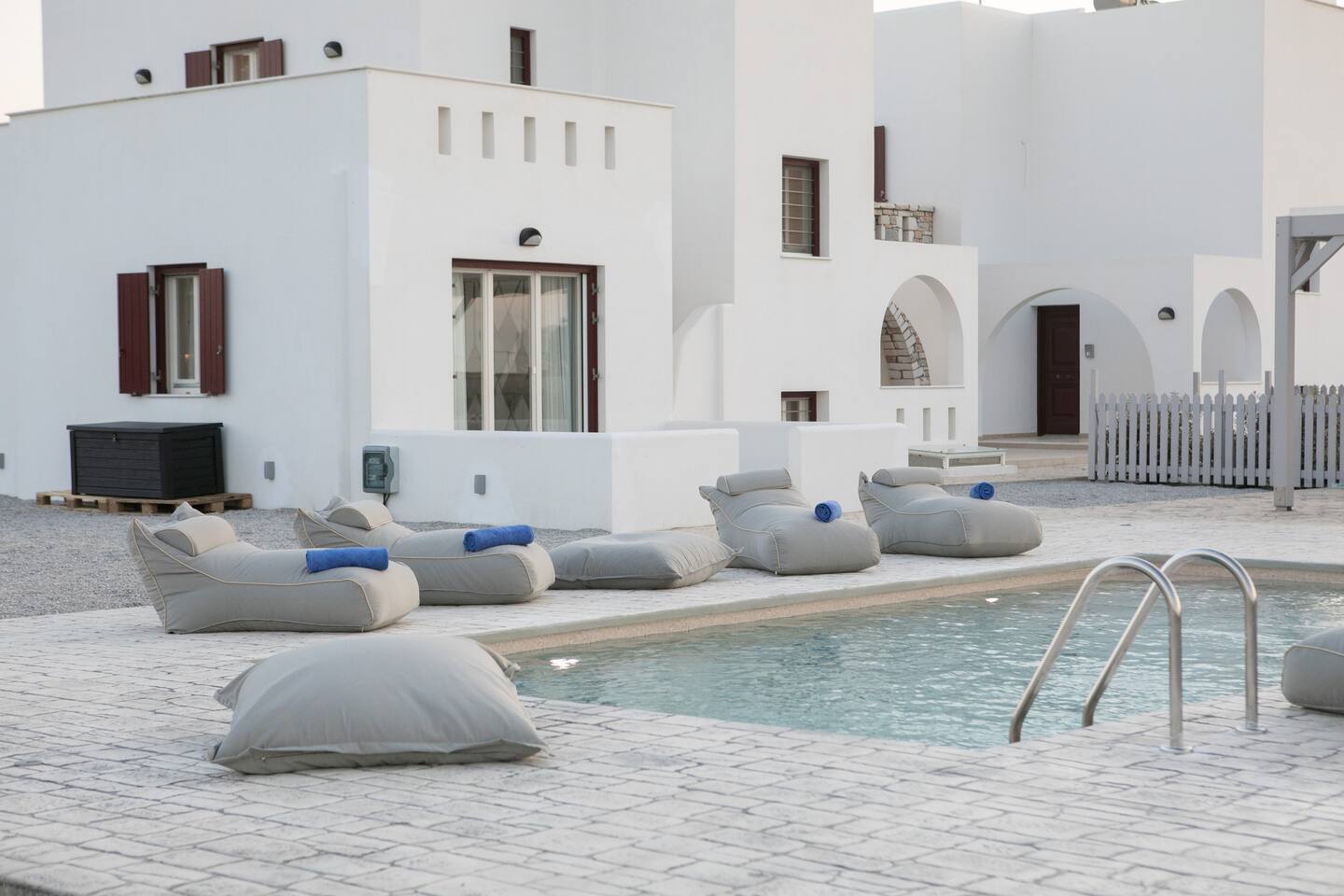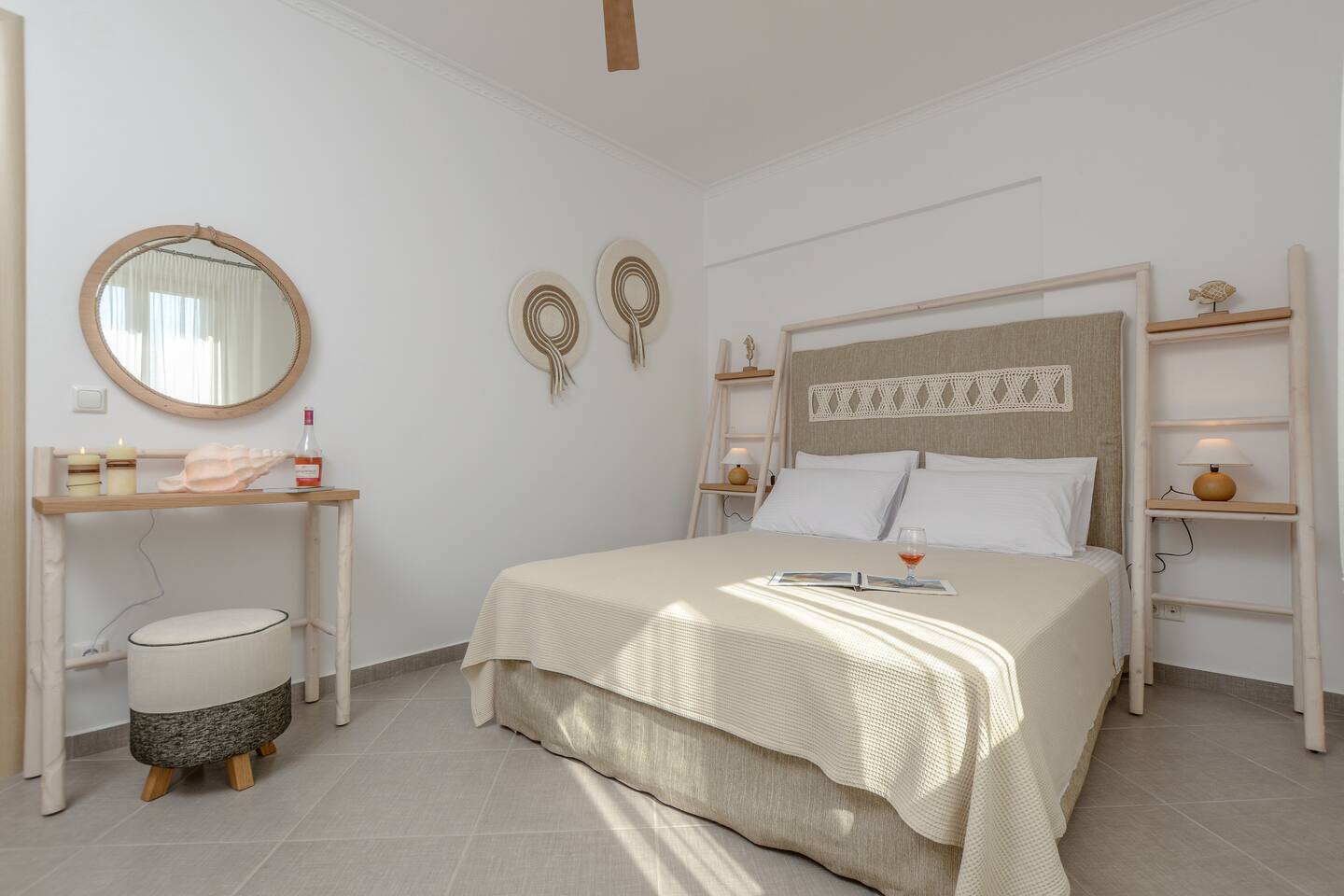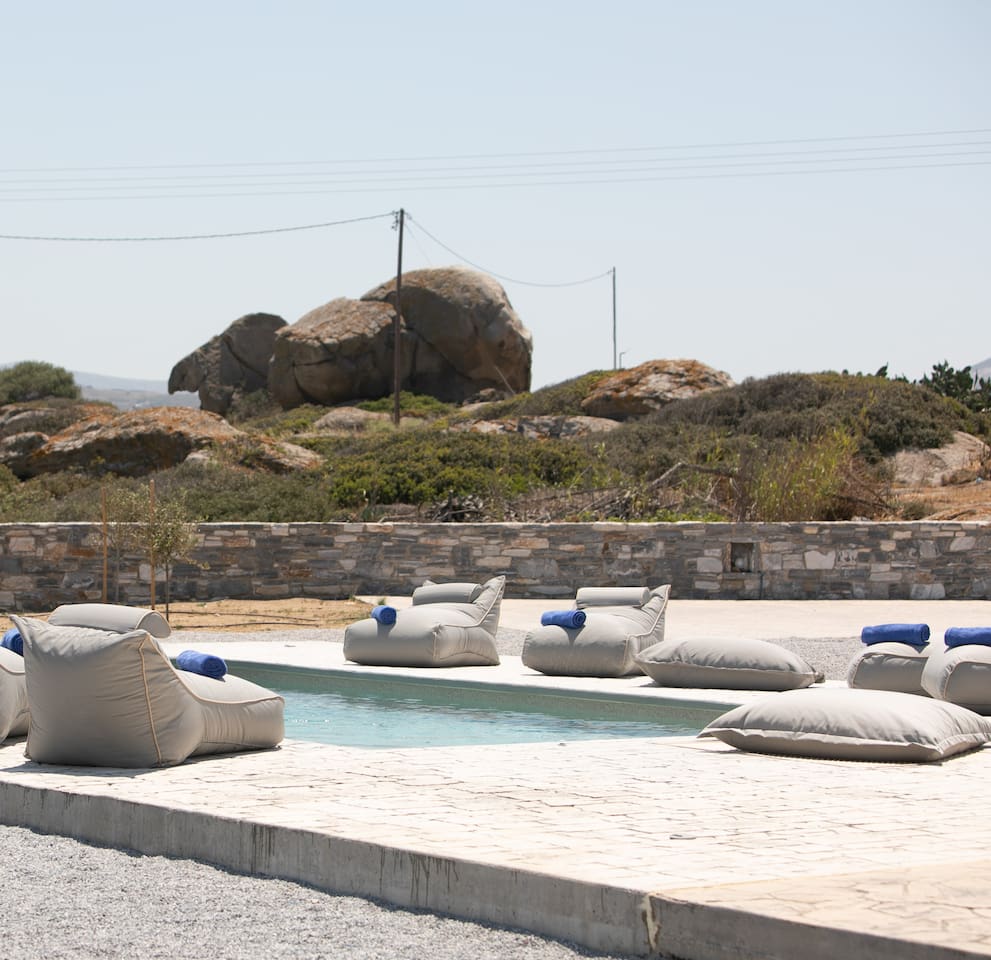 Villa Olives, is built and designed in authentic Cycladic line and ambience with bright and soothing colours. A quiet and comfortable accommodation. There are only traditional wooden beds and furniture. All rooms have a breathtaking view either of the Aegean sea or the surrounding cliffs. The outdoor facilities are perfect for moments of relaxation and rejuvenation. Our guests might experience the most harmonious holidays. There is not only the sun and sea but also the outstanding landscape.