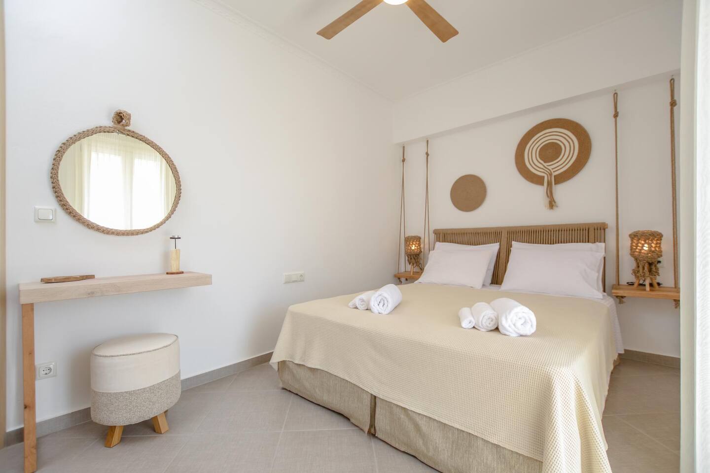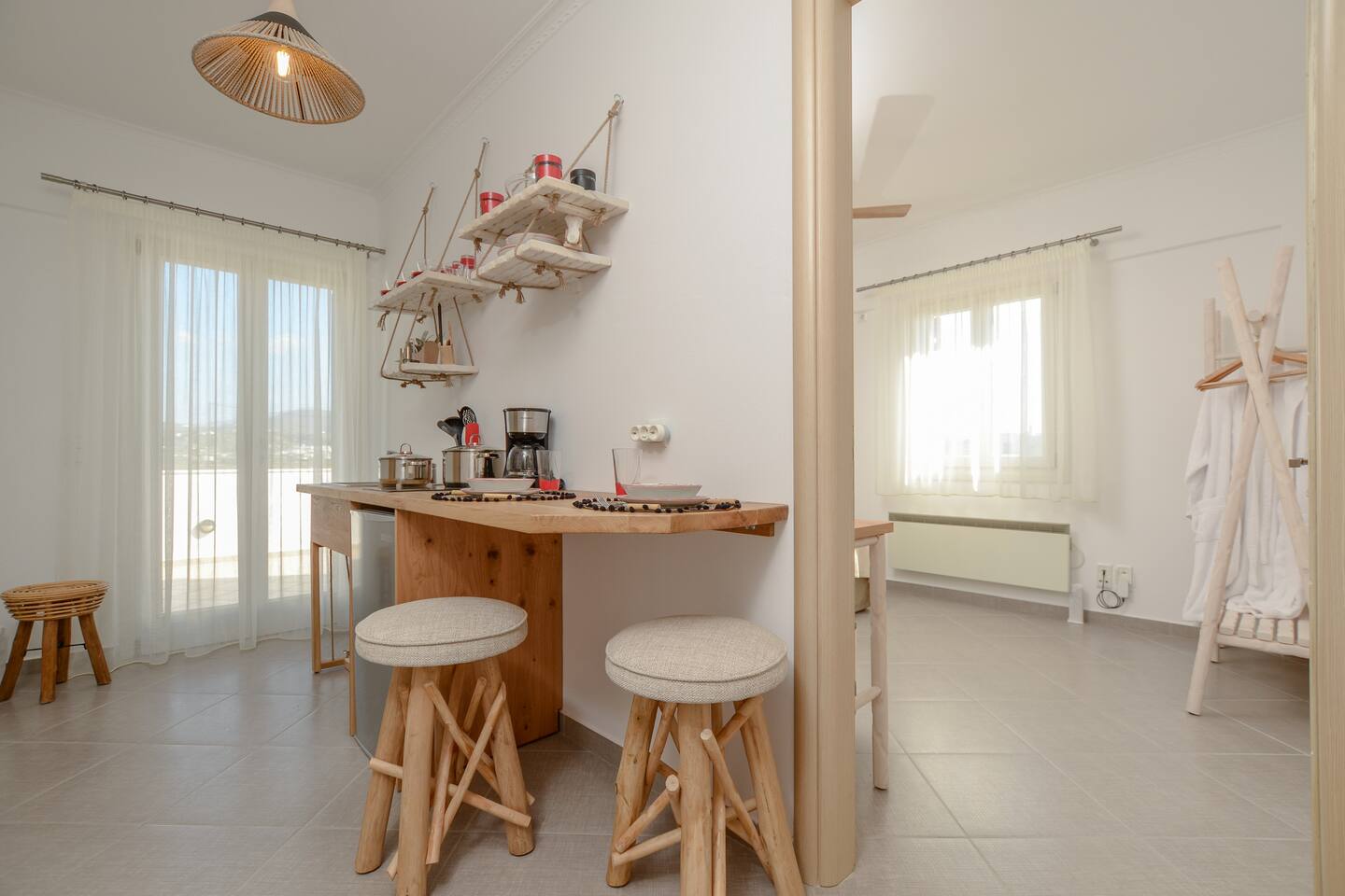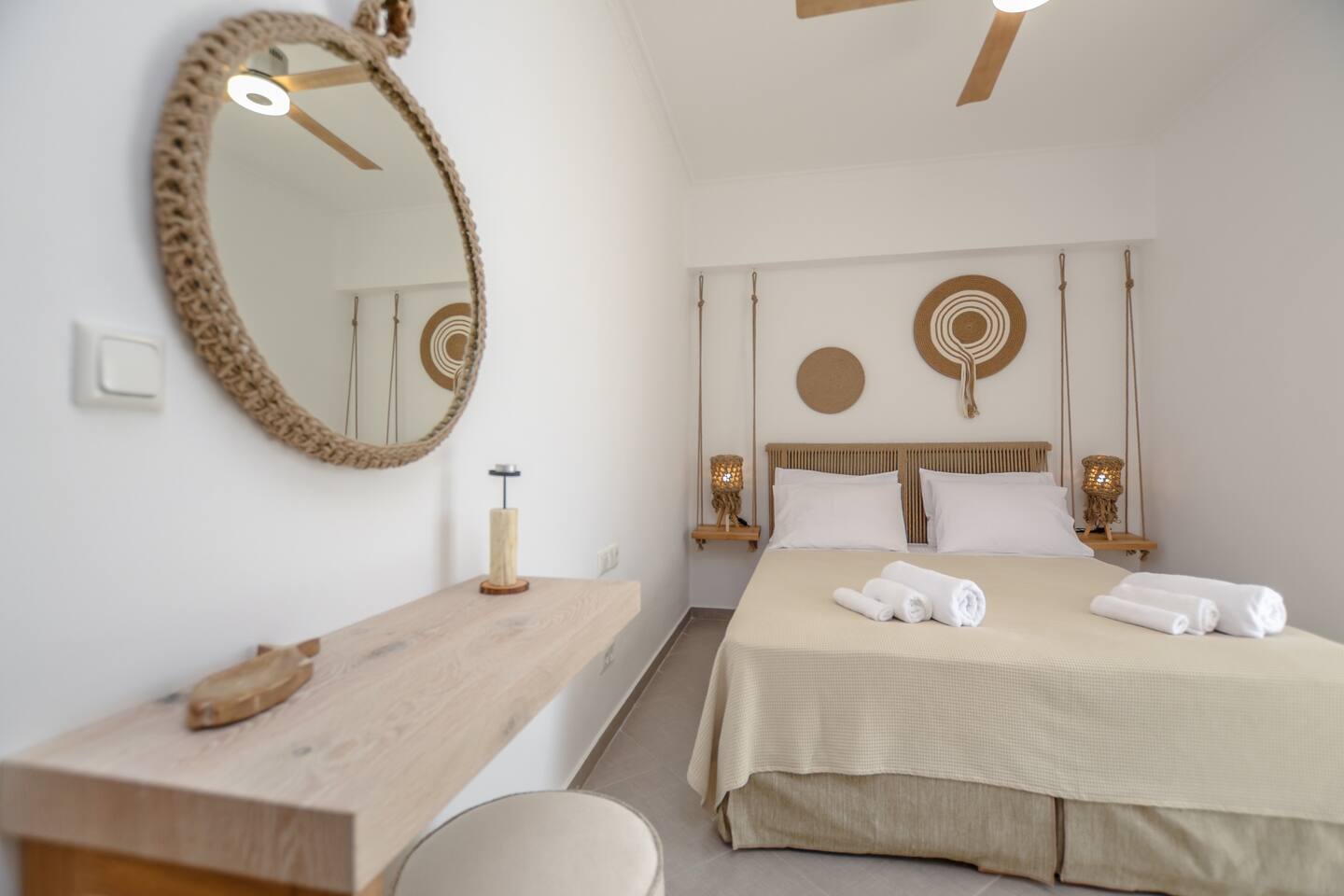 Villa Olives, is built and designed in authentic Cycladic line and ambience with bright and soothing colours. A quiet and comfortable accommodation. There are only traditional wooden beds and furniture. All rooms have a breathtaking view either of the Aegean sea or the surrounding cliffs. The outdoor facilities are perfect for moments of relaxation and rejuvenation. Our guests might experience the most harmonious holidays. There is not only the sun and sea but also the outstanding landscape.
