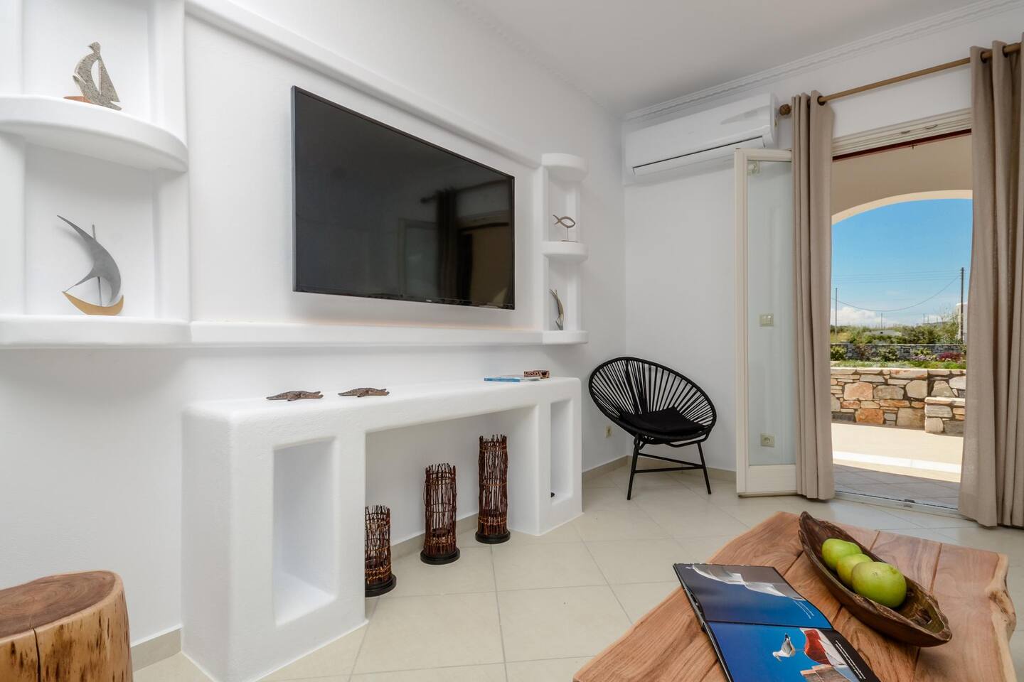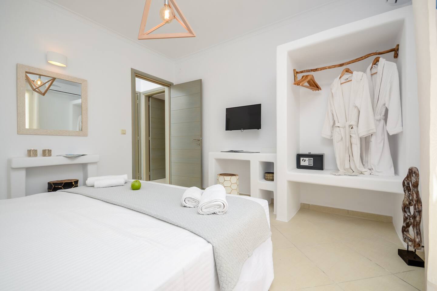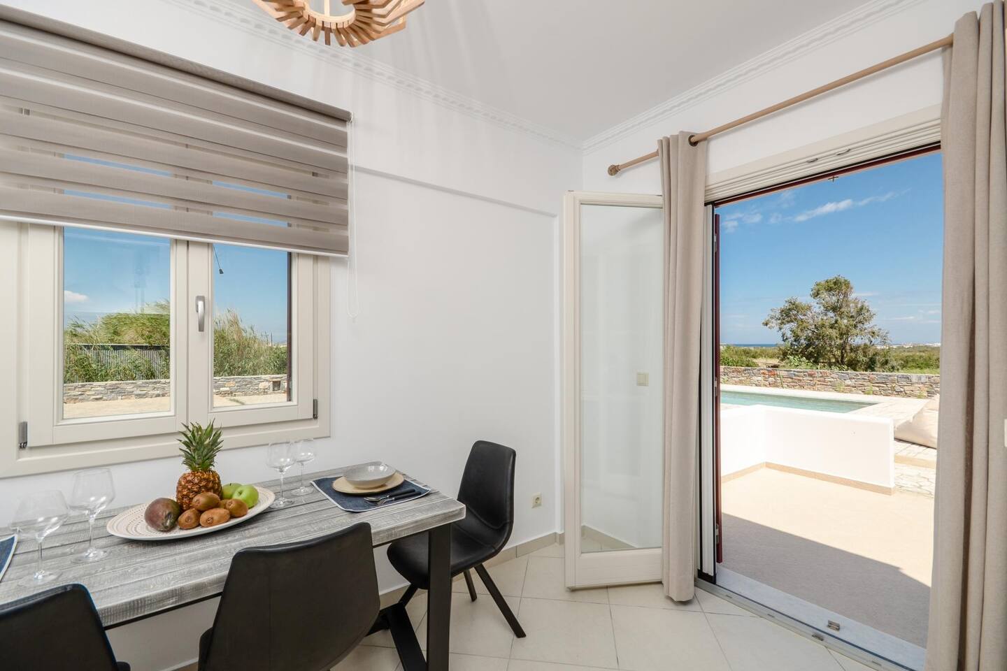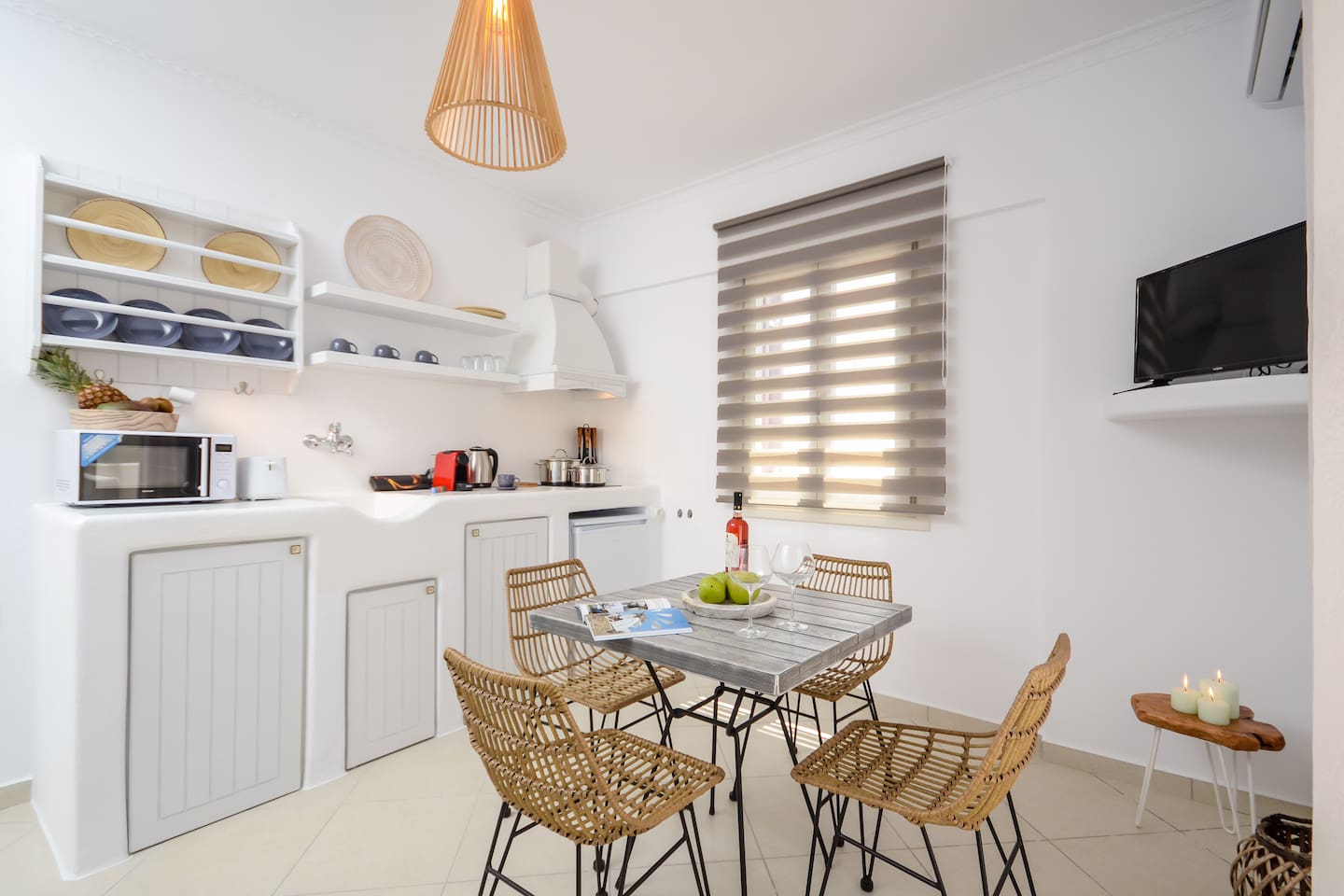 Villa Rocks, is built and designed in authentic Cycladic line and ambience with bright and soothing colours. A quiet and comfortable accommodation. All rooms have a breathtaking view either of the Aegean sea or the surrounding cliffs. The private pool, spa bath and outdoor facilities are perfect for moments of relaxation and rejuvenation. Our guests might experience the most harmonious holidays. There is not only the sun and sea but also the outstanding landscape. The villa provides guests with a terrace, city views, a seating area, a flat-screen TV, a fully equipped kitchen with a fridge and an oven, and a private bathroom with bath and a hairdryer. A dishwasher, a microwave and stovetop are also available, as well as a coffee machine and a kettle.