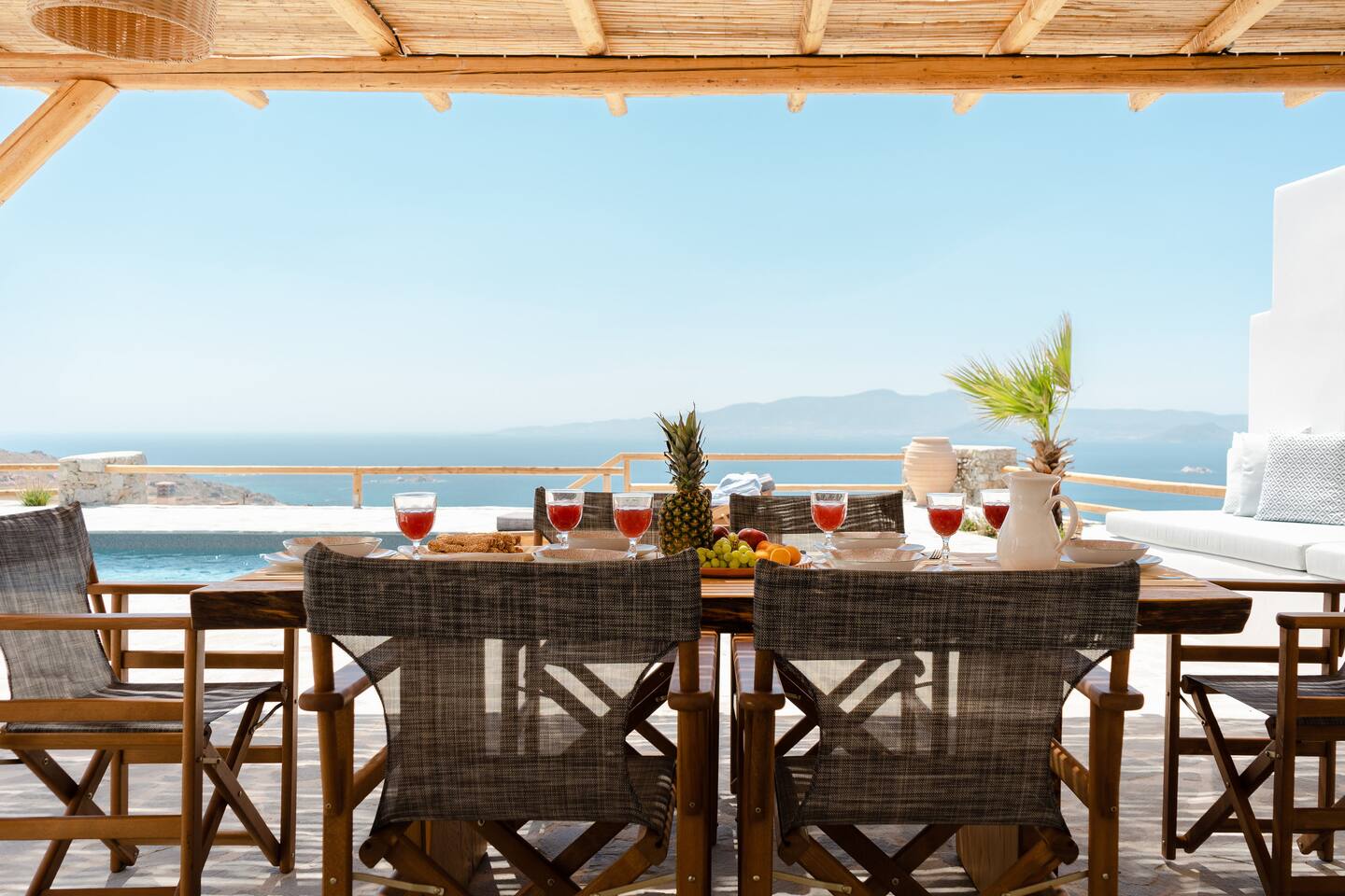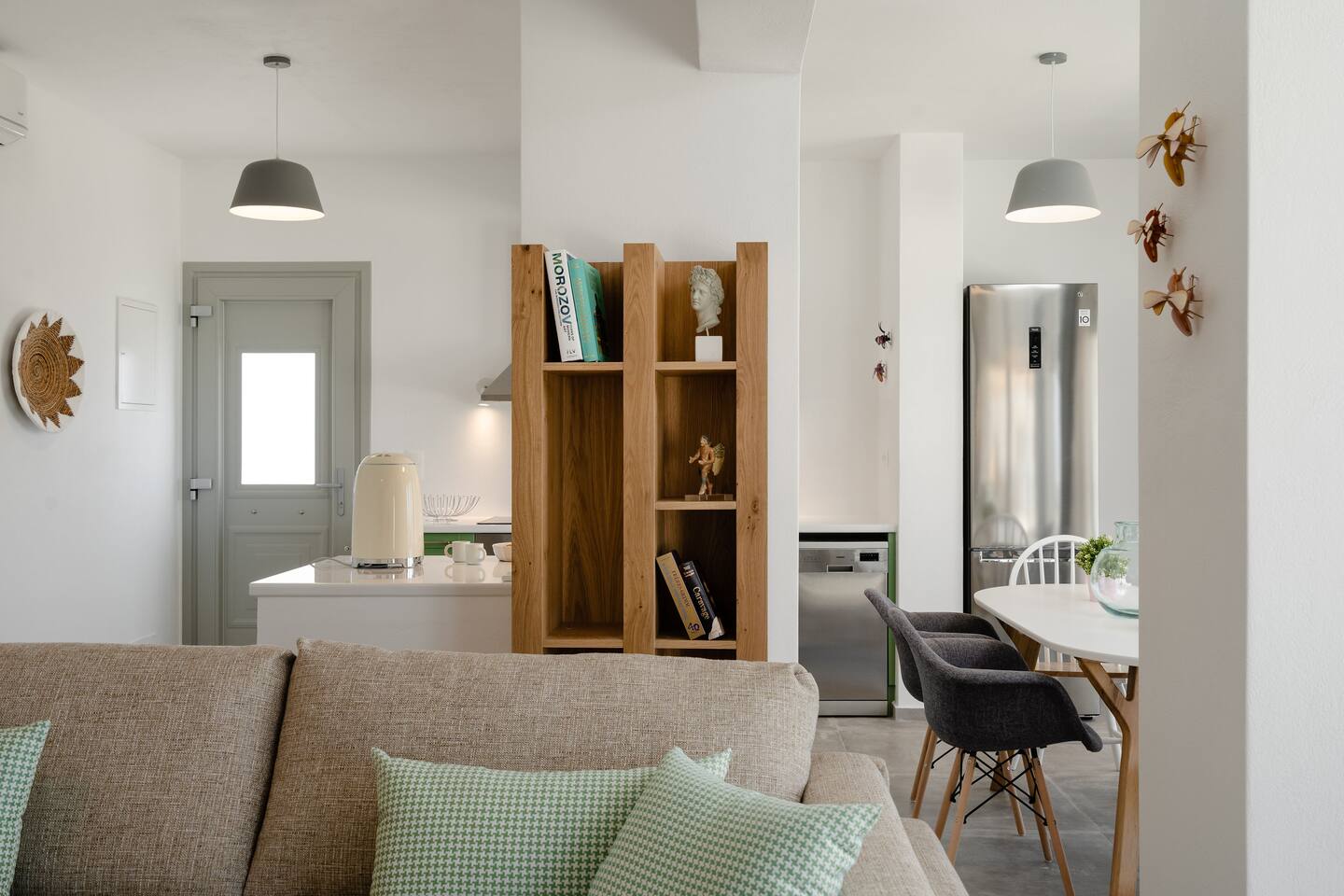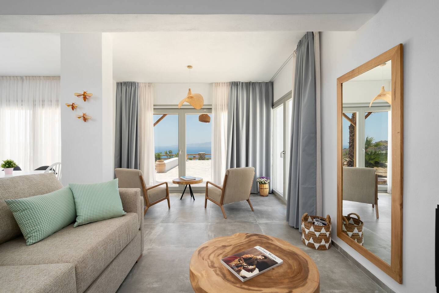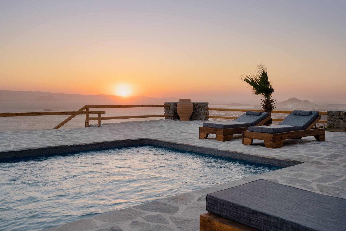 This two-story villa offers the perfect blend of comfort and elegance: Two spacious bedrooms on the first floor, each with an ensuite bathroom. A sofa bed in the living room that can become 1 double bed. A bright living room on the ground floor with a fully equipped kitchen and a guest WC. A dedicated laundry room with a washing machine and dryer. A private swimming pool with a refreshing outdoor shower. Relax and soak in the breathtaking sea and sunset views!! Ideal for families, couples, or groups seeking tranquility and luxury.